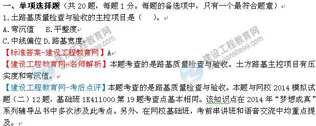 【建設(shè)工程教育網(wǎng)-考后點評】本題考查的是瀝青混合料結(jié)構(gòu)組成與分類。本題與網(wǎng)校典型例題(0101)17題考查點基本相同。該知識點在2014年“夢想成真”系列輔導(dǎo)叢書中多次涉及此考點。另外,在網(wǎng)?;A(chǔ)班,考前串講班和語音交流中均重點提及。