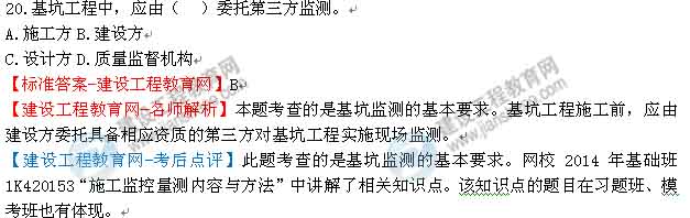 【老師解析】2014年一級建造師市政工程實務(wù)試題及答案(16-20)