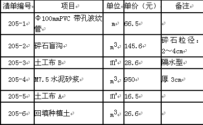 表4 工程量清單單價表