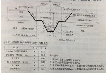施工單位承接了一新建高速公路K50+000~K75+000段路面工程與交通工程的施工,其中包含中央分隔帶及路面排水工程。一般路段中央分隔帶斷面設(shè)計圖如圖4:
