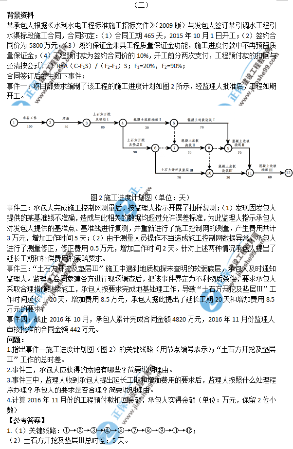 2018年一級建造師《水利實務》試題答案及解析案例二