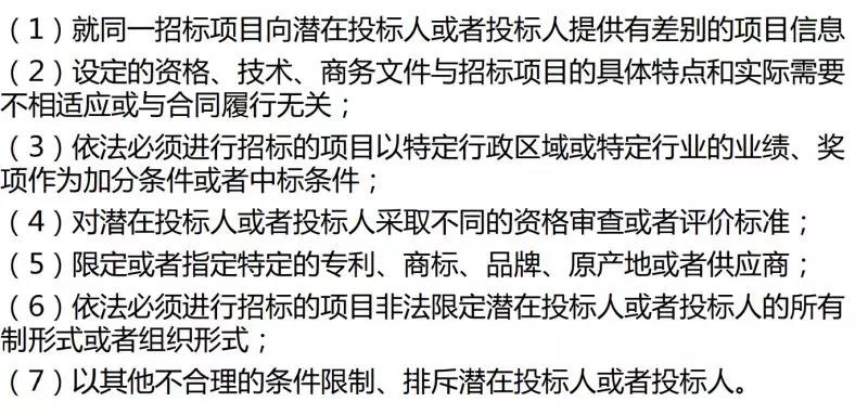 招標(biāo)人有下列行為之一的,屬于以不合理條件限制、排斥潛在投標(biāo)人或投標(biāo)人: