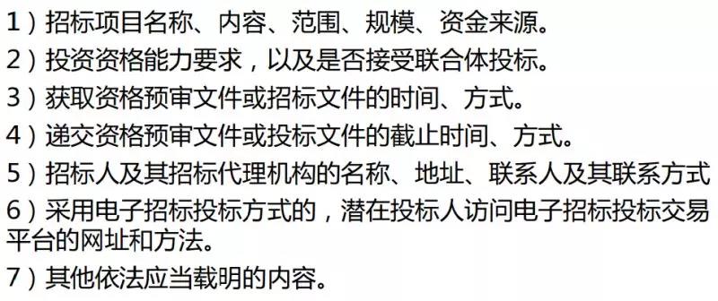 1.依法必須招標(biāo)項目的資格預(yù)審公告和招標(biāo)公告,應(yīng)當(dāng)載明以下內(nèi)容:(新增)