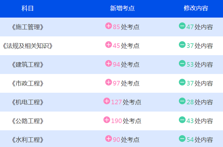2019二級(jí)建造師考試教材變化還是比較大的,各科目變化比例如下,管理約20%,法規(guī)約30%,建筑約30%,市政約30%,機(jī)電約30%,水利約30%,公路約45%。