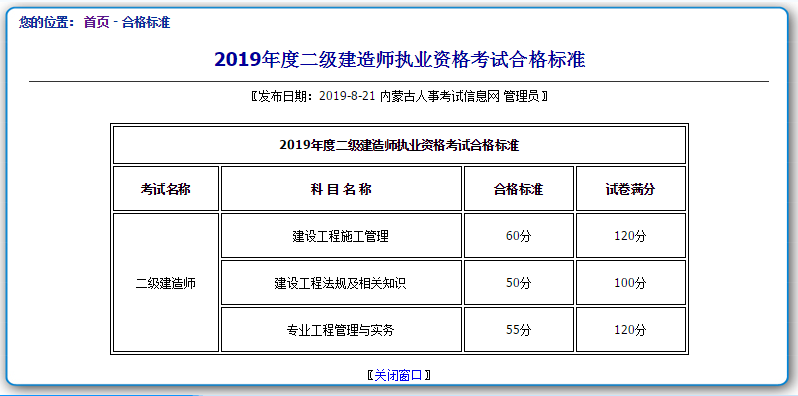 內(nèi)蒙古2019年二級(jí)建造師考試成績(jī)合格標(biāo)準(zhǔn)公布