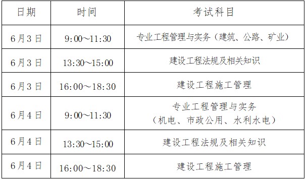 海南省2023年二級(jí)建造師考試時(shí)間已公布,海南2023年二建考試時(shí)間為:6月3、4日。各科目具體考試時(shí)間如下: