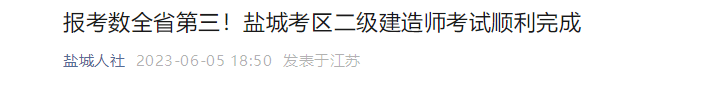 2023年二級建造師資格考試鹽城考區(qū)此次考試共設(shè)置考點(diǎn)學(xué)校6個(gè),單科最大安排412個(gè)考場,報(bào)名人數(shù)25915人