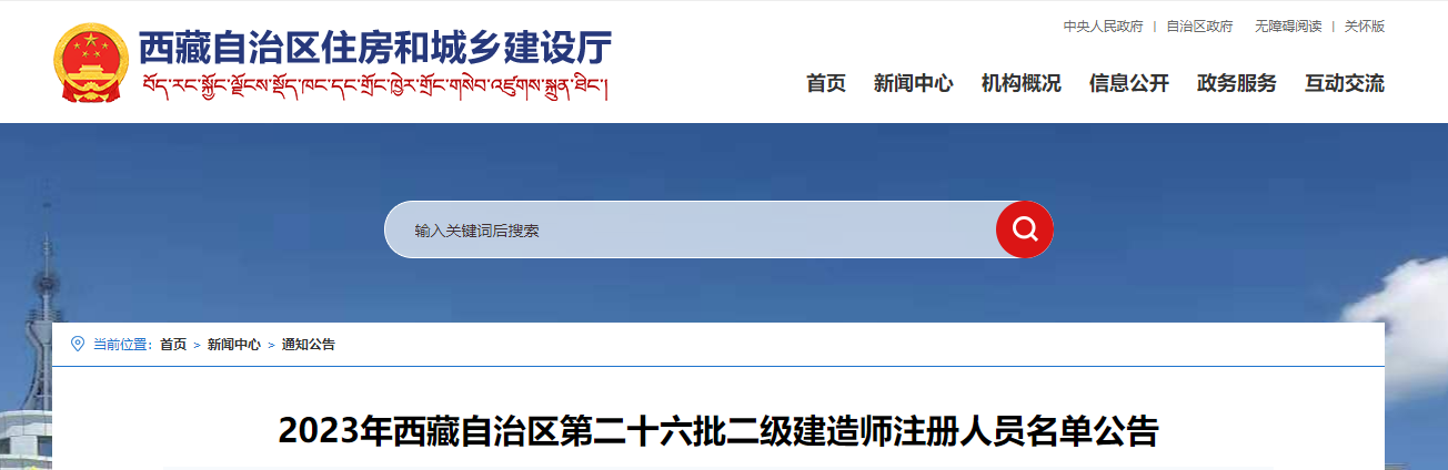 2023年西藏自治區(qū)第二十六批二級(jí)建造師注冊(cè)人員名單公告