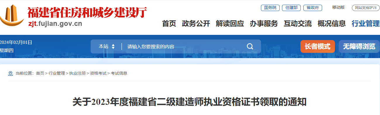 關(guān)于2023年度福建省二級建造師執(zhí)業(yè)資格證書領(lǐng)取的通知