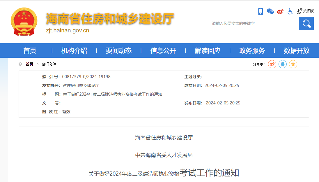 海南省發(fā)布關(guān)于做好2024年度二級(jí)建造師執(zhí)業(yè)資格考試工作的通知