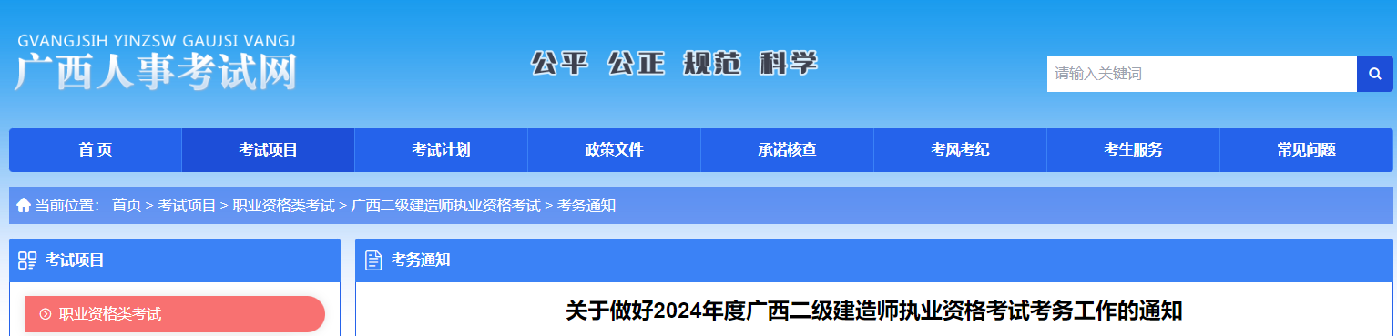 根據(jù)《廣西壯族自治區(qū)人事廳廣西壯族自治區(qū)建設(shè)廳關(guān)于印發(fā)〈二級(jí)建造師執(zhí)業(yè)資格制度暫行規(guī)定〉和〈二級(jí)建造師執(zhí)業(yè)資格考試實(shí)施辦法〉的通知》(桂人發(fā)〔2005〕68號(hào))精神,為做好2024年度廣西二級(jí)建造師執(zhí)業(yè)資格考試考務(wù)工作,現(xiàn)將有關(guān)事項(xiàng)通知如下: