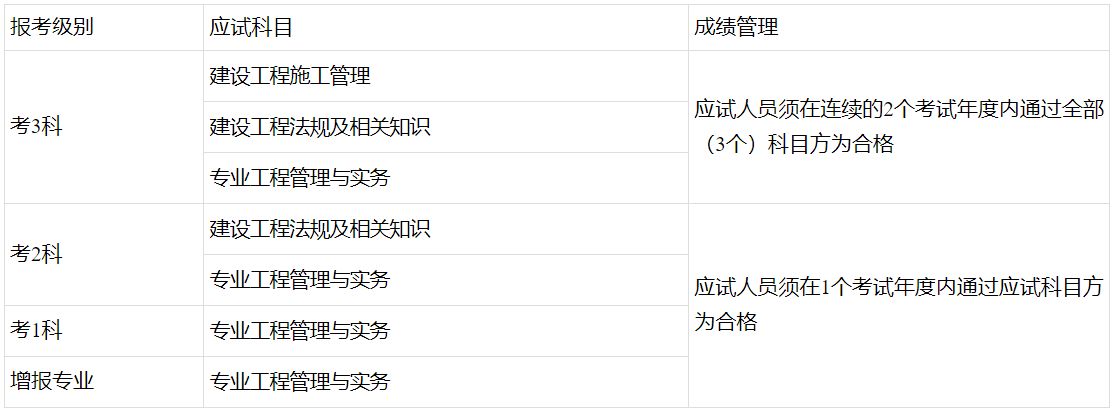 廣西二建考試級(jí)別、應(yīng)試科目及成績(jī)管理