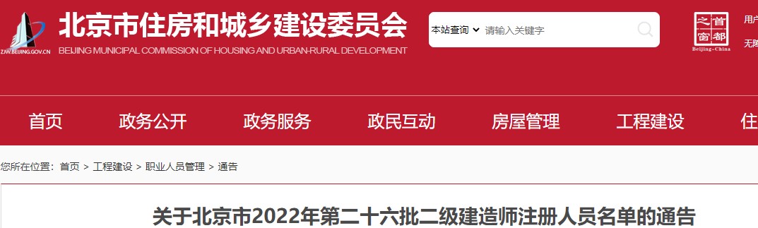 關(guān)于北京市2022年第二十六批二級(jí)建造師注冊(cè)人員名單的通告