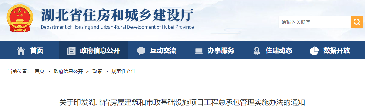 關于印發(fā)湖北省房屋建筑和市政基礎設施項目工程總承包管理實施辦法的通知