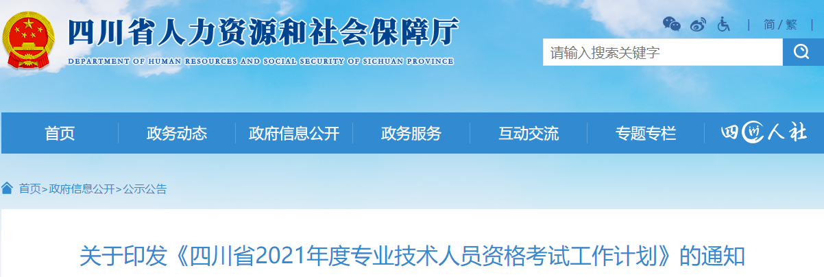 關(guān)于印發(fā)《四川省2021年度專業(yè)技術(shù)人員資格考試工作計(jì)劃》的通知