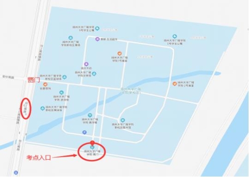 友情提示:請從揚(yáng)州職業(yè)大學(xué)西門進(jìn)入,由于西門離考場有一段距離,請考生盡量提早到達(dá)考場所在教學(xué)樓,可乘坐101路公交車。