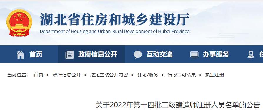 關(guān)于2022年第十四批二級(jí)建造師注冊(cè)人員名單的公告