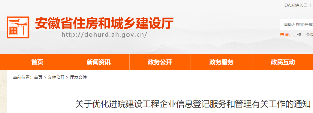 為優(yōu)化建筑市場營商環(huán)境,進(jìn)一步推進(jìn)“放管服”改革,加快建立健全統(tǒng)一開放、競爭有序的建筑市場體系,現(xiàn)就優(yōu)化省外進(jìn)皖建設(shè)工程企業(yè)信息登記服務(wù)和管理有關(guān)事項通知如下: