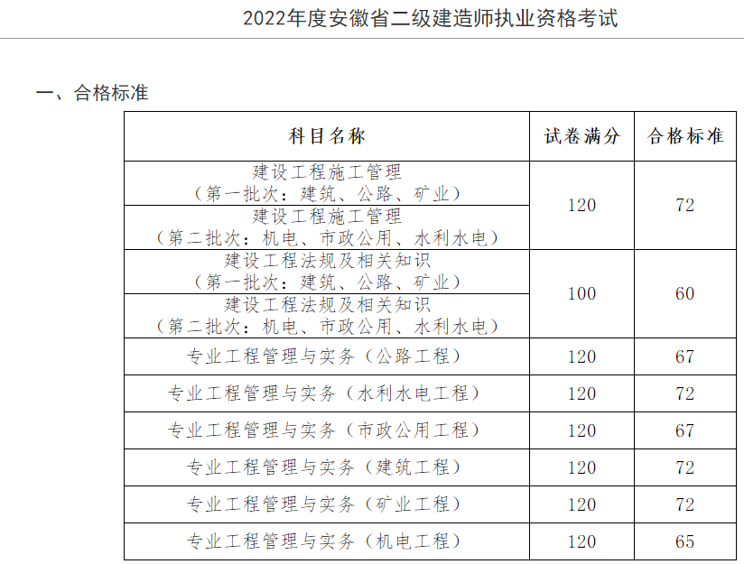 2022年度安徽省二級(jí)建造師執(zhí)業(yè)資格考試成績(jī)合格標(biāo)準(zhǔn)