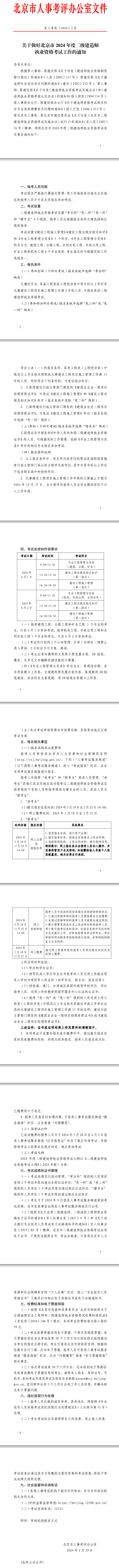 關(guān)于做好北京市2024年度二級建造師執(zhí)業(yè)資格考試考務(wù)工作的通知