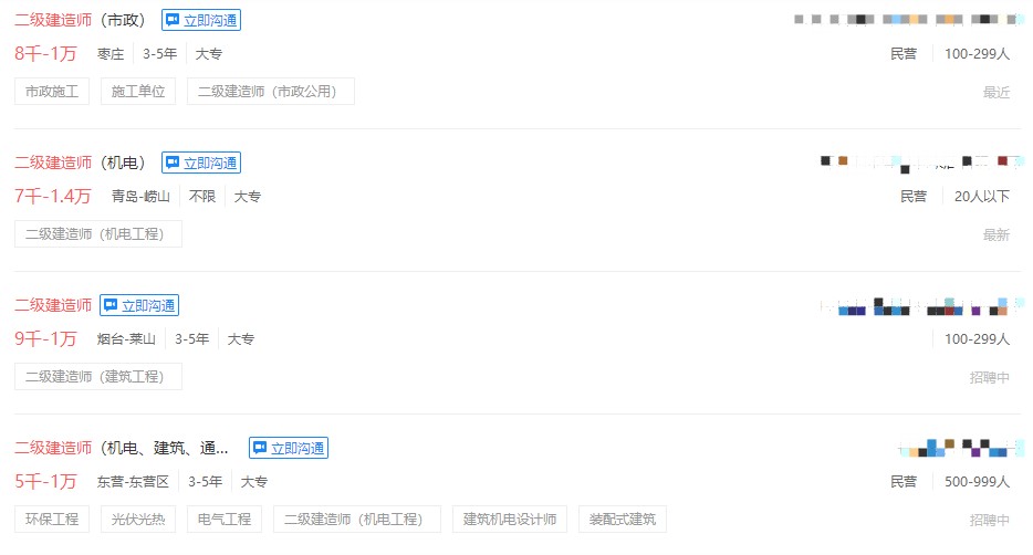 很多考生比較關(guān)注考取二級(jí)建造師證書后能拿到多少工資,小編在某招聘網(wǎng)站上搜索了幾個(gè)城市的二級(jí)建造師招聘信息,來(lái)給大家做個(gè)參考。