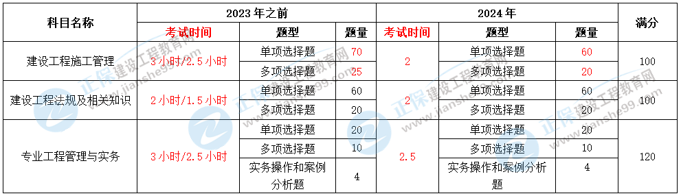 2024年二級建造師考試大綱全新發(fā)布,細心的學(xué)員不難發(fā)現(xiàn),二建各科除了考綱有較大變化外,考試的時長、題量均有變化,小編為大家做了如下對比: