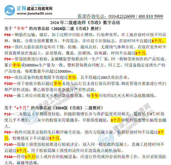 《2024年二建《市政》數(shù)字考點(diǎn)匯總》