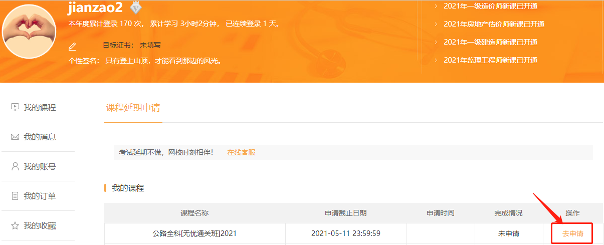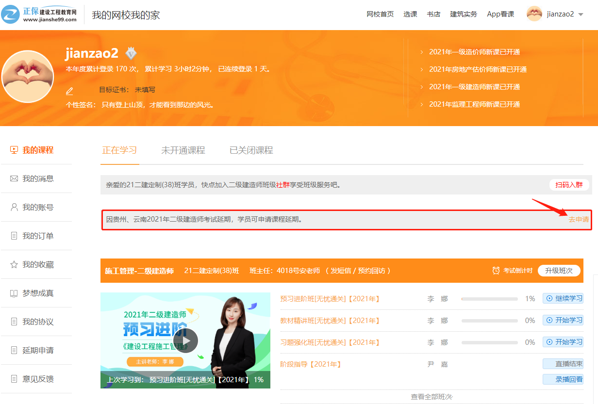因貴州、云南2021年二級(jí)建造師考試延期,學(xué)員可申請(qǐng)課程延期