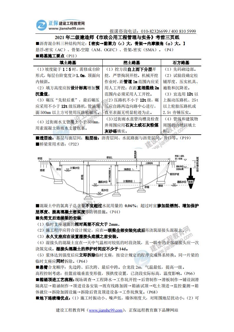 建設(shè)工程教育網(wǎng)的老師們精心整理了2021年二級(jí)建造師市政實(shí)務(wù)考前三頁紙,免費(fèi)發(fā)給大家,趕快來領(lǐng)取吧~