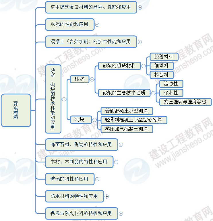 2022二建建筑:1張思維導圖+5題掌握砂漿、砌塊的技術性能和應用