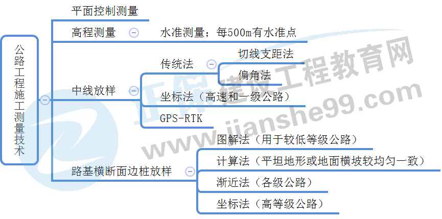 2022二建《公路》:1張思維導(dǎo)圖+5題掌握公路工程施工測量方法