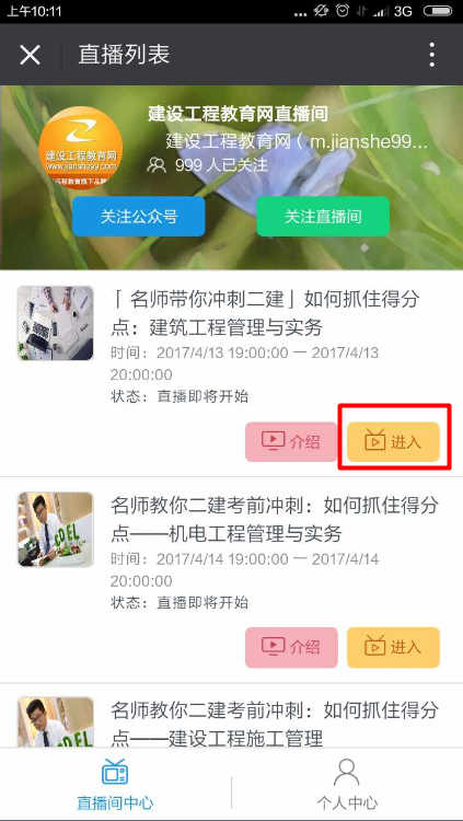 步驟2: 識別后,進(jìn)入建設(shè)工程教育網(wǎng)直播間。