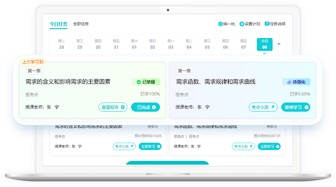 每日學(xué)習(xí)測試結(jié)果,動態(tài)調(diào)整每日任務(wù)。
