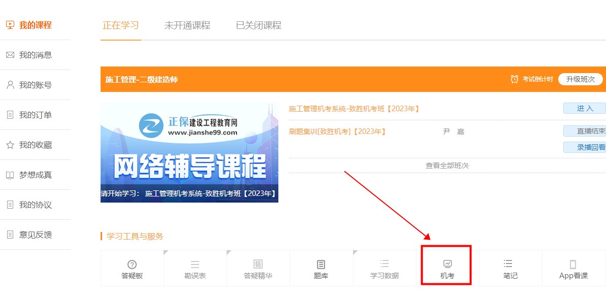 ?。?)找到下方“學習工具與服務”,點擊“機考”按鈕即可進行機考模擬系統(tǒng)