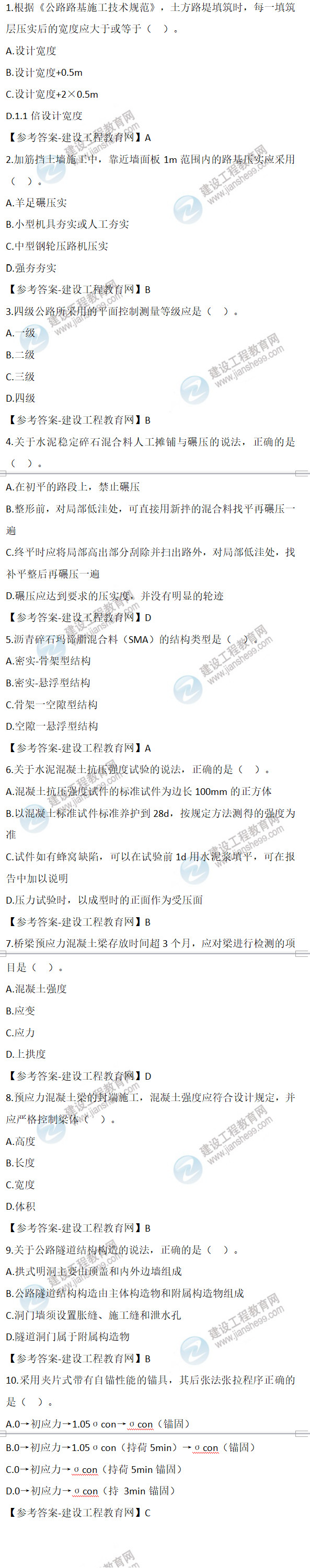 - · 2022年二級建造師公路實務試題及答案1-10(12月補考)