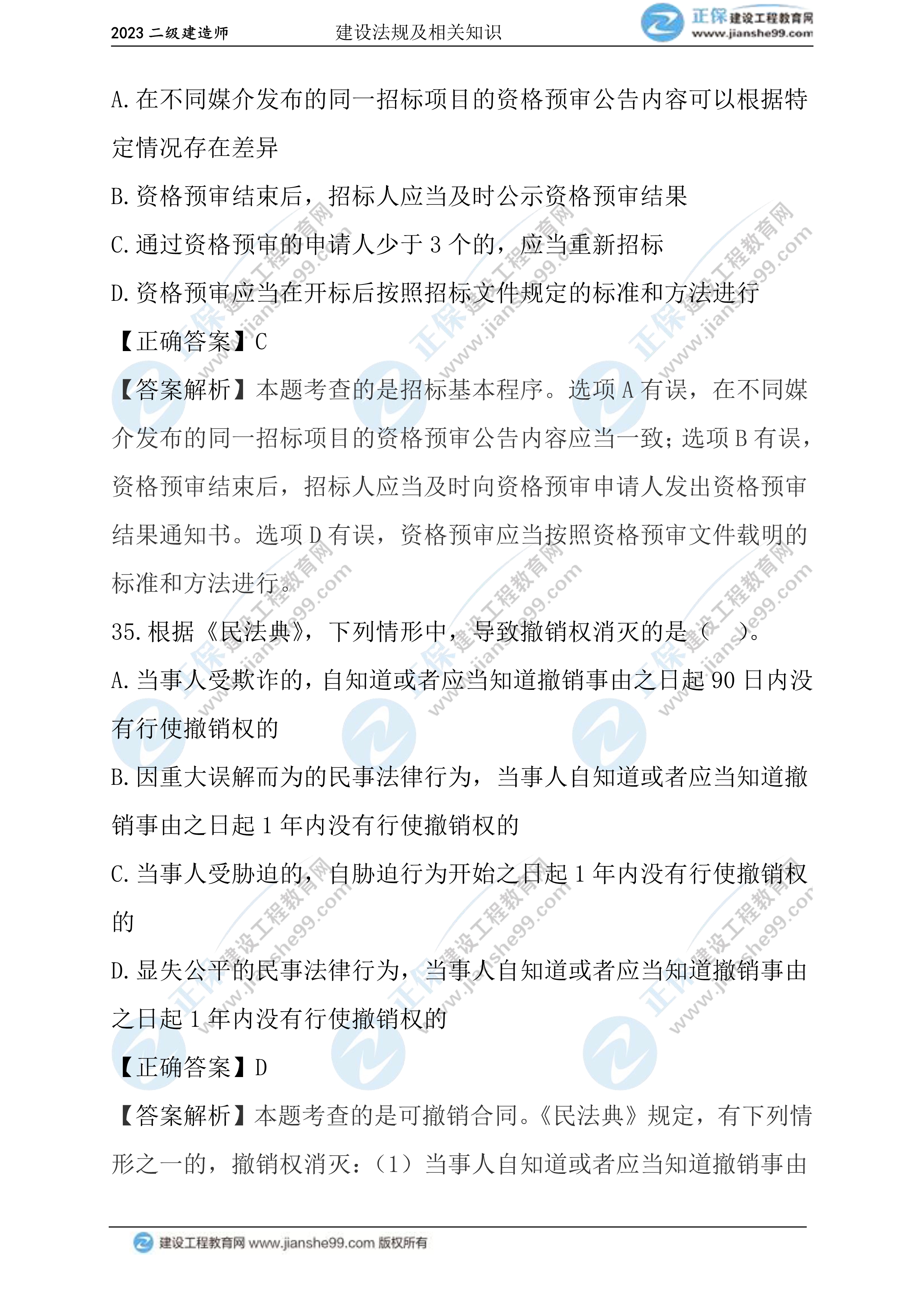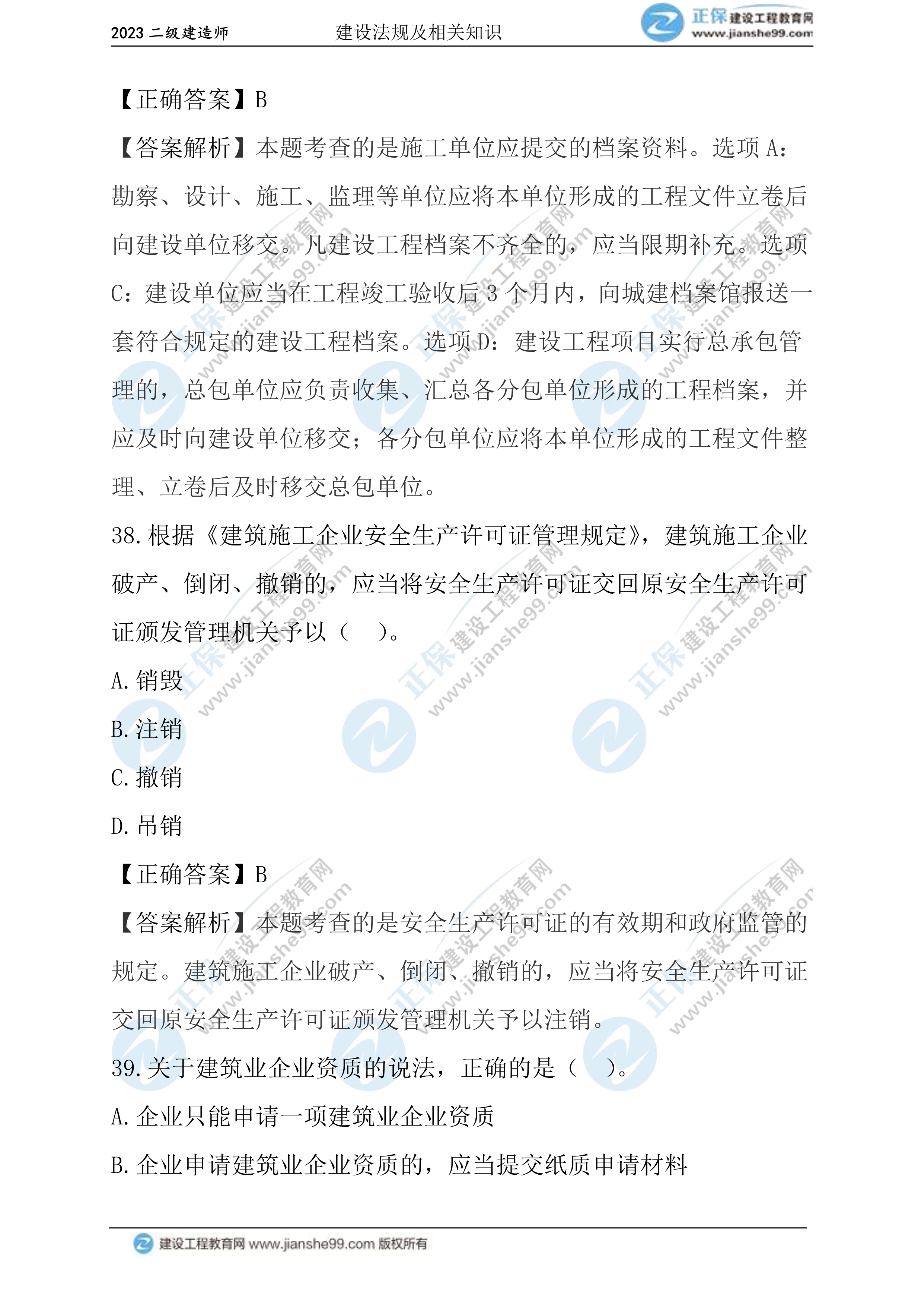 2023年二級建造師工程法規(guī)真題及答案31-40