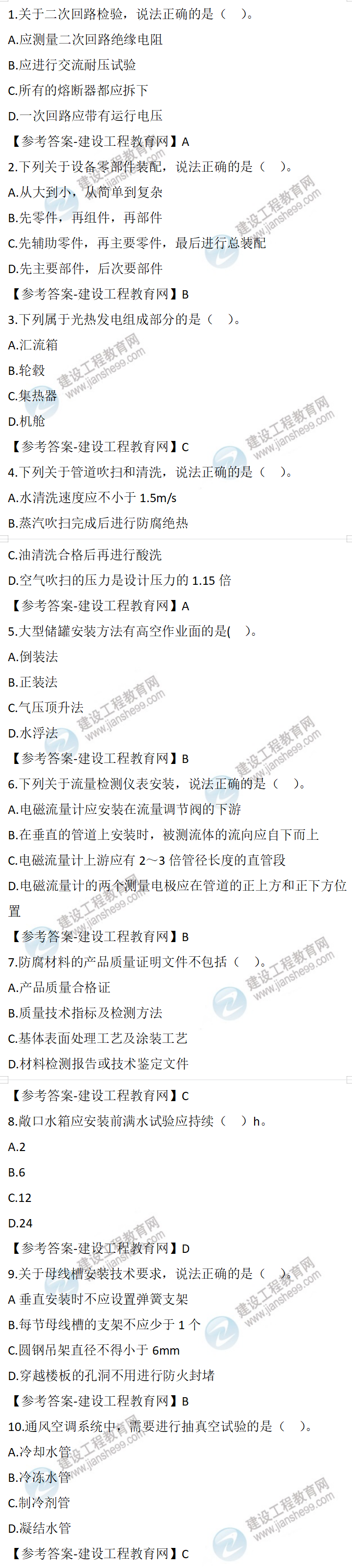 2023年二級(jí)建造師機(jī)電實(shí)務(wù)真題及答案1-10