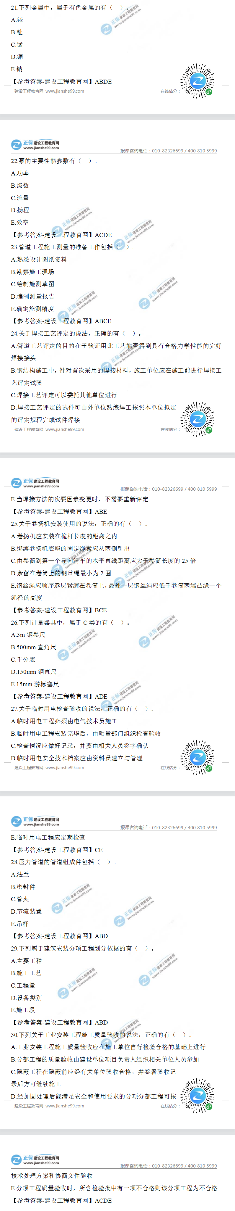 2021年二級(jí)建造師機(jī)電工程實(shí)務(wù)試題及答案第21-30題