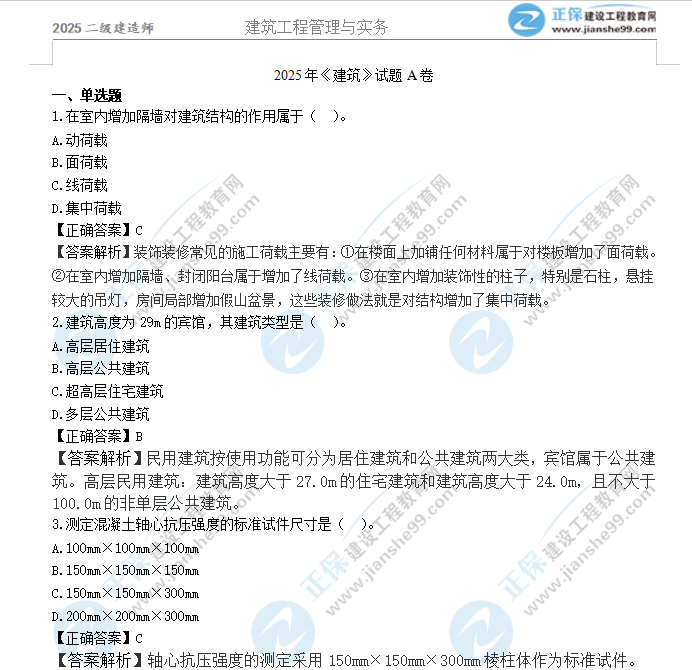 2025年二級建造師建筑實(shí)務(wù)真題及答案解析