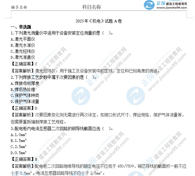 2025年二級(jí)建造師機(jī)電實(shí)務(wù)真題及答案解析