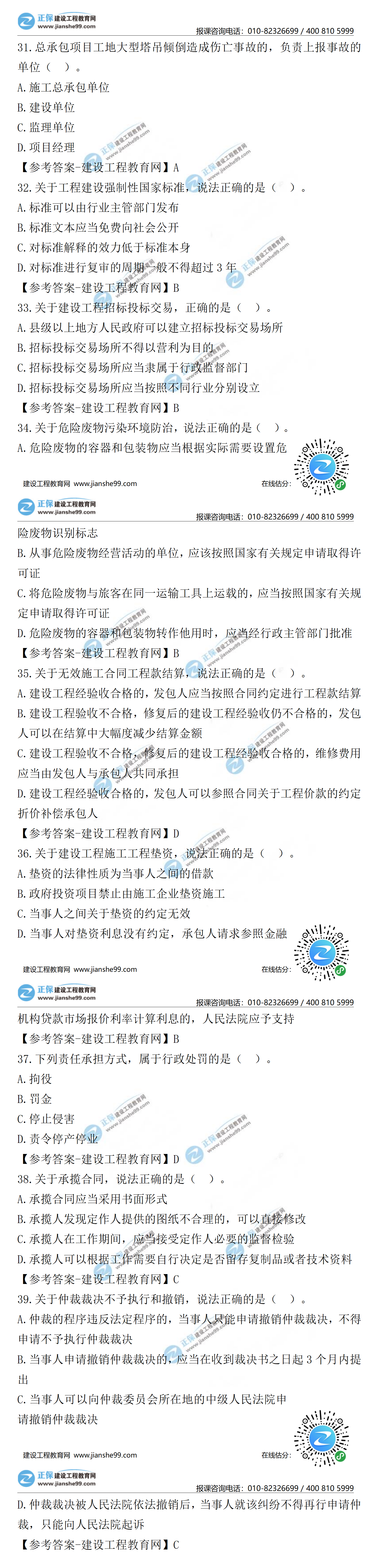 2021年二級建造師考試于5月22日、23日舉行,考試過后,廣大考生最關心的問題莫過于2021年二級建造師工程法規(guī)試題及答案第31-40題,建設工程教育網(wǎng)考后將會根據(jù)學員反饋,及時匯總2021年二級建造師工程法規(guī)試題及答案分享給大家,并且會及時做出答案解析,希望能為廣大二建考生朋友帶來幫助。