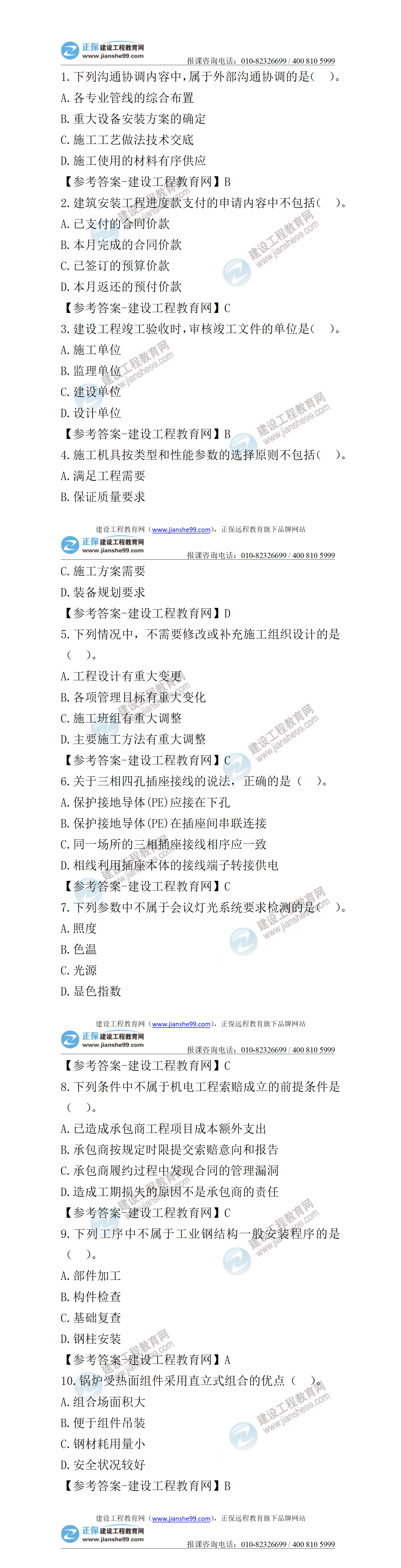 2021年二級(jí)建造師機(jī)電工程實(shí)務(wù)試題及答案第1-10題(30日)