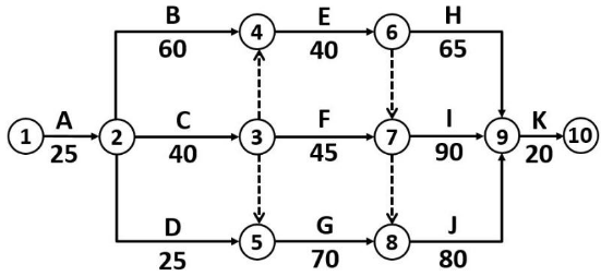 關(guān)鍵線路:①→②→④→⑥→⑦→⑨→⑩和①→②→③→⑤→⑧→⑨→⑩(或A→B→E→I→K和A→C→G→J→K)