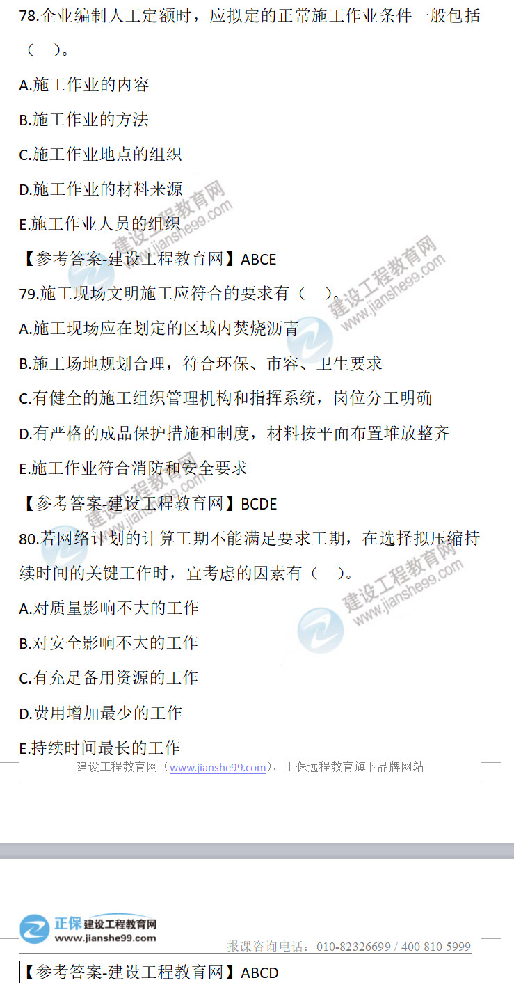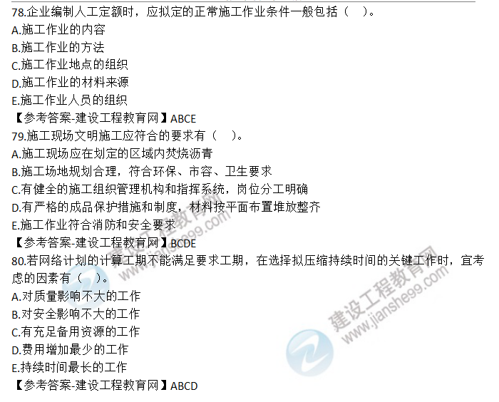 2022年二級建造師施工管理試題及答案71-80(11日下午)