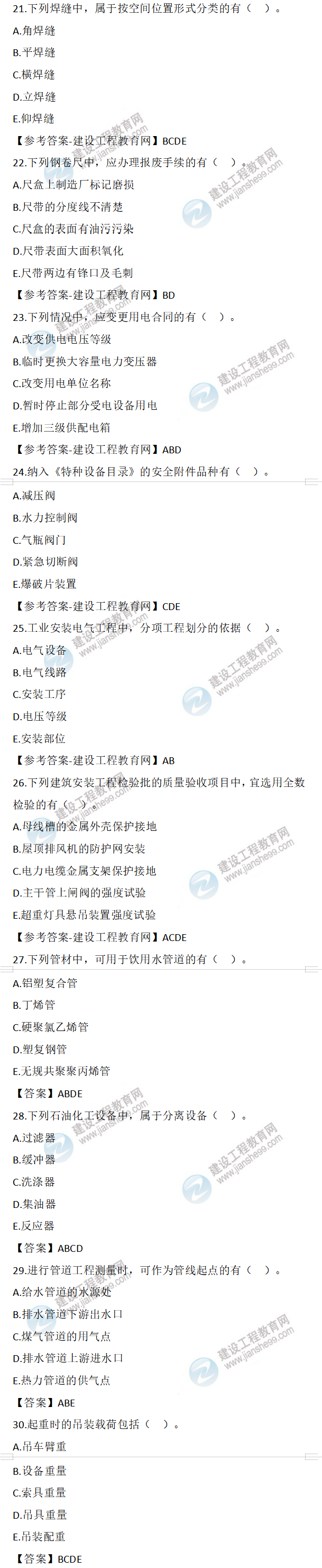 2022年二級建造師機電實務(wù)試題及答案第21-30題(12日2天3科)