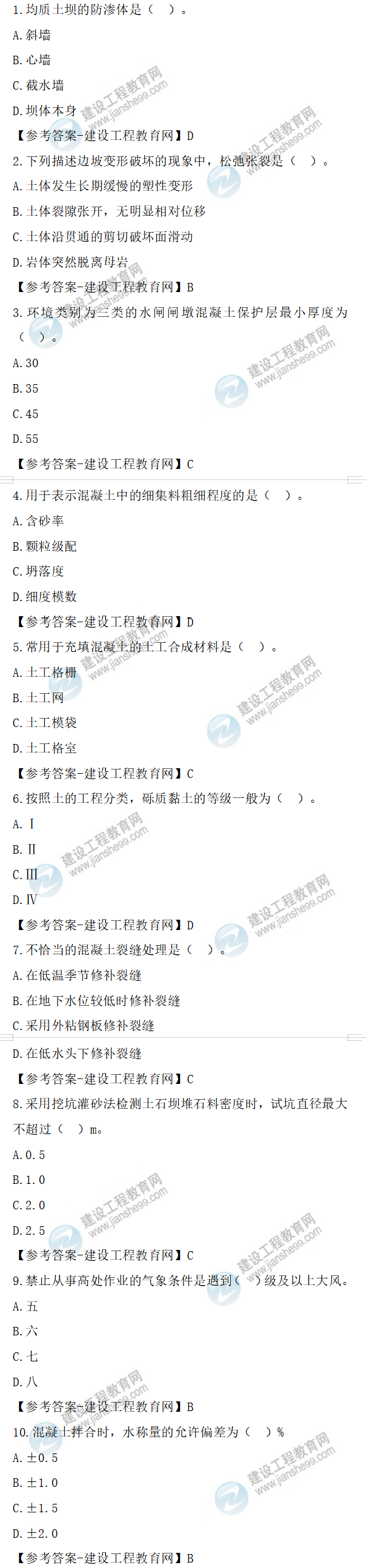 2022年二級(jí)建造師水利實(shí)務(wù)試題及答案第1-10題(12日2天3科)