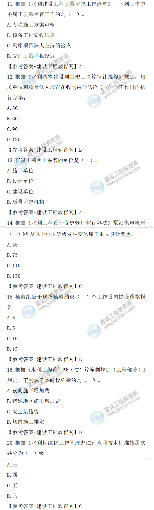 2022年二級建造師水利實(shí)務(wù)試題及答案第11-20題(12日2天3科)