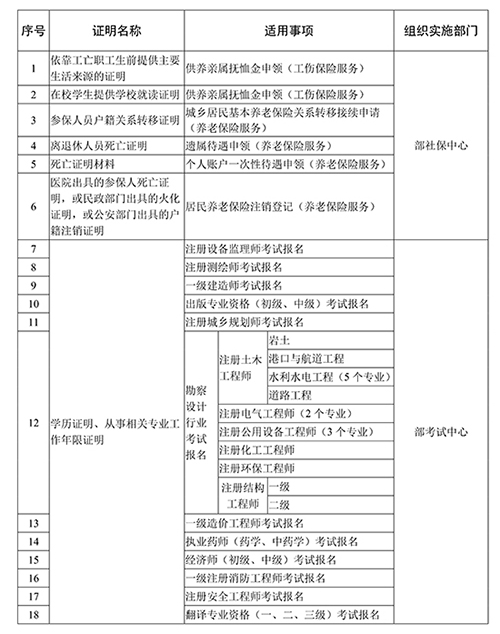 根據(jù)現(xiàn)有工作基礎,確定在6項社會保險經(jīng)辦業(yè)務和12項專業(yè)技術(shù)人員資格考試報名中開展證明事項告知承諾制試點(詳見附件)。