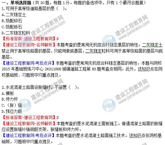 2015年二級建造師《市政公用工程管理與實務(wù)》答案及解析由老師整理而成,部分網(wǎng)站未經(jīng)許可擅自轉(zhuǎn)載、抄襲,造成內(nèi)容有所缺失或錯誤,請大家以建設(shè)工程教育網(wǎng)發(fā)布為準(zhǔn)!二建試題答案