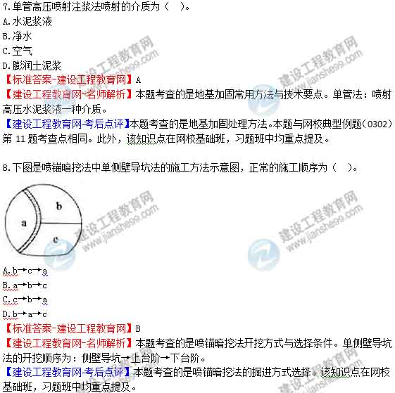 【建設(shè)工程教育網(wǎng)-考后點(diǎn)評(píng)】本題考查的是小導(dǎo)管注漿加固技術(shù)。本題與網(wǎng)校2015年基礎(chǔ)班練習(xí)中心2K313000城市軌道交通工程第3、33、35題、習(xí)題班練習(xí)中心2K313000城市軌道交通工程第27、29題、典型例題(0301)第5題、2015年模擬試題三第9題考查點(diǎn)相同。此外,該知識(shí)點(diǎn)在網(wǎng)?;A(chǔ)班,習(xí)題班中均重點(diǎn)提及。